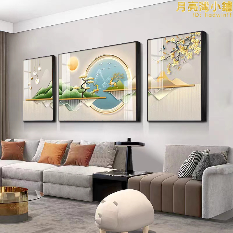 2023新款十字繡金色麋鹿三聯畫福祿生輝刺繡客廳輕奢手工自己滿繡