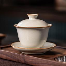 台灣現貨汝窯懸停蓋碗三才蓋碗單個高檔功夫冰裂可養家用泡不燙手