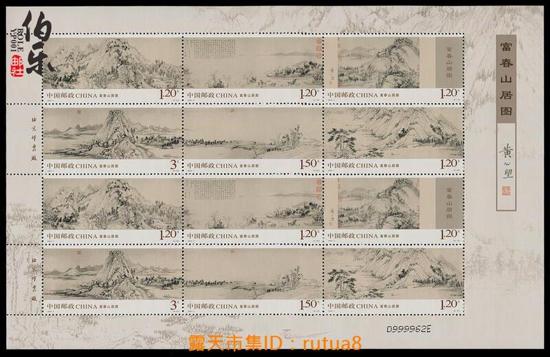 現貨下殺!伯樂郵社 2010-7 富春山居圖郵票 小版/版票 完整版 山水國畫郵票