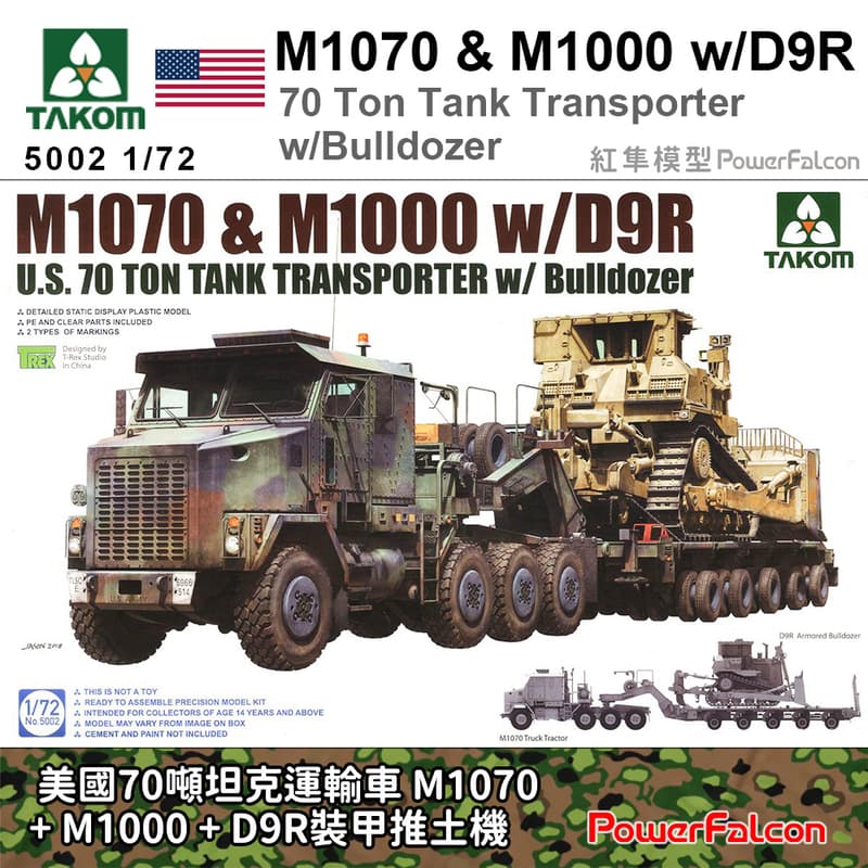 [紅隼]1/72 美國70噸坦克運輸車 M1070+M1000+D9R裝甲推土機(TAKOM 5002)