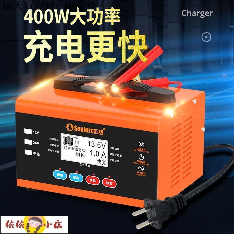 【花花小店】電瓶充電器 小能人汽車電瓶充電器12v24v智能脈沖修復摩托車電池充電機大功率