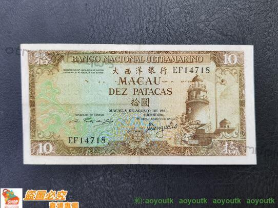 🔥1981年澳門大西洋銀行10元,澳門幣拾元燈塔,少見年份,中品02 金銘藏品