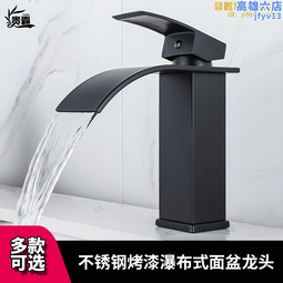 【好康】不鏽鋼黑色烤漆瀑布式冷熱臺上盆洗臉面盆化妝室浴室櫃單孔水龍頭