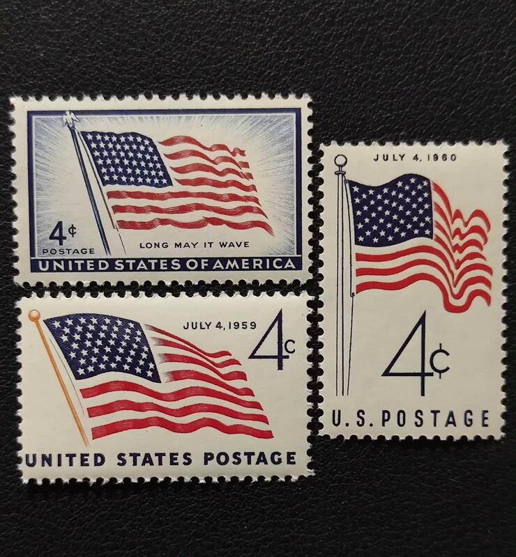 #郵票美國直在加星星的星條旗 【珍罕首發 】發行了60年又使用超過60年的美國官方發行的《48星,49星,50星