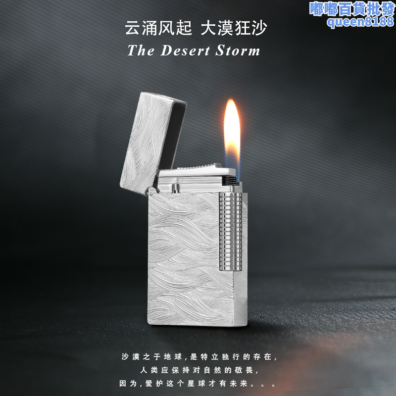 【好物優選】高檔朗聲充氣打火機個性復古側滑輪火石打火機大漠狂沙黑色