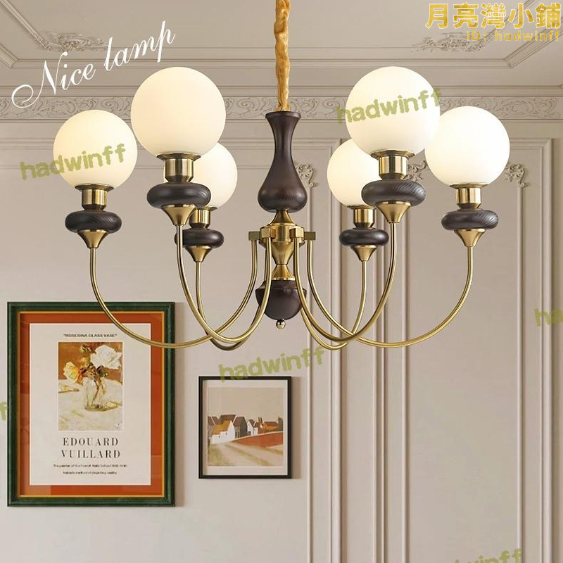 【可開發票】法式中古客廳吊燈簡約胡桃木魔豆餐廳燈木質美式復古風臥室燈具