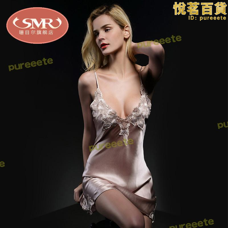 【全館免運】【商場】珊目爾100%桑蠶絲睡裙性感真絲睡衣蕾絲邊吊帶家居服