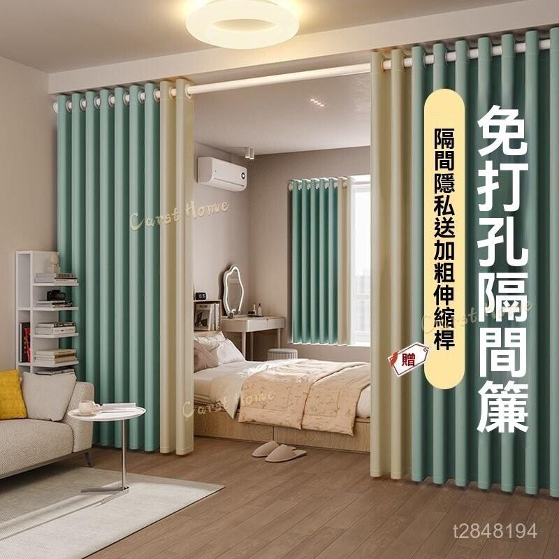 ?免運?免打孔隔斷屏風佈 全遮光窗簾免打孔安裝遮擋簾一整套房間隔斷簾臥室出租房隔熱飄窗 頂天立地隔間拉簾 臥室隔斷屏風