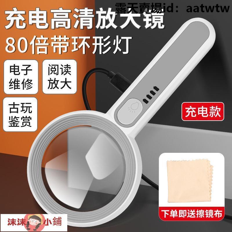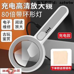 【啊花小店】放大鏡 顯微放大鏡 可充電80倍帶led燈老人學生閱讀手持放大鏡維修古玩珠寶鑒定高清