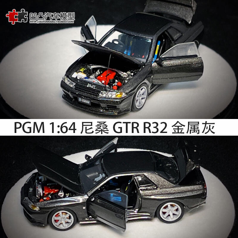 限量收藏日產尼桑GTR R32 PGM1:64 GT-R 仿真合金全開汽車模型灰