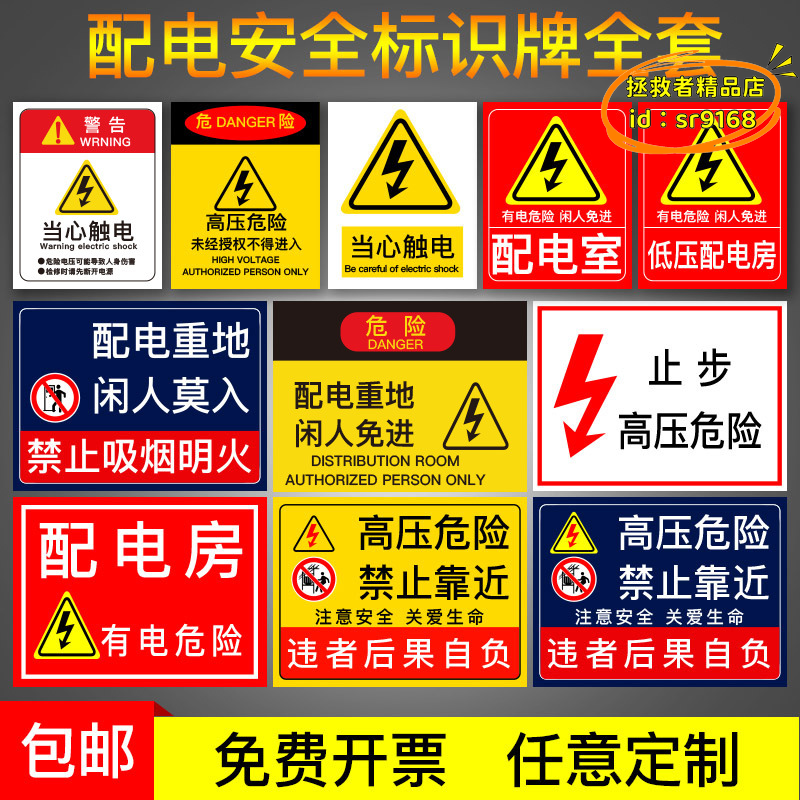 【台灣現貨】配電箱標識牌有電危險警示貼紙高壓危險止步當心觸電配電室警示牌