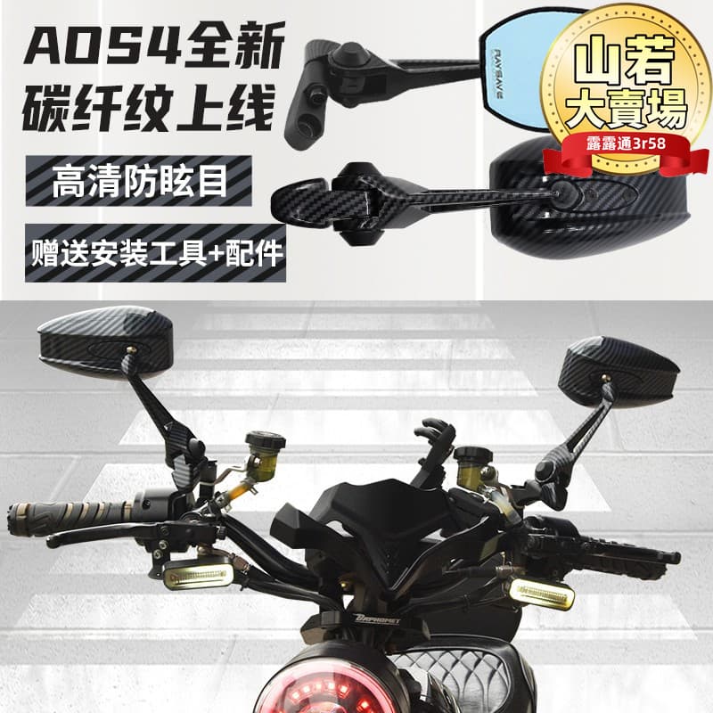 【高評價】aos4後視鏡小牛深遠九號電動車藍光紫光碳纖紋祖國版反光鏡