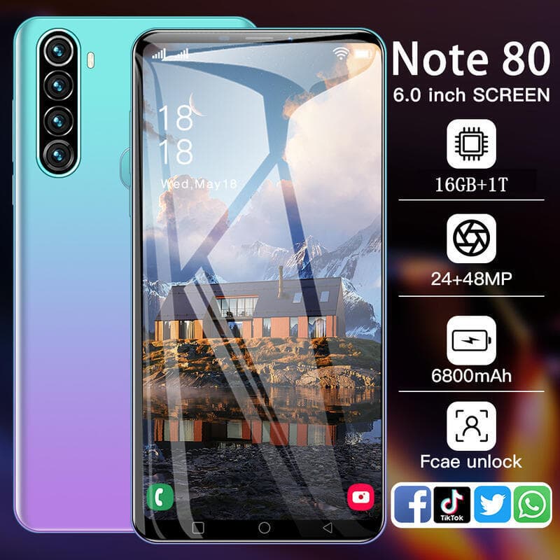 臺灣專用手機全網通5G繁體中文 安卓高清新爆款Note80高端智能指紋解鎖手機