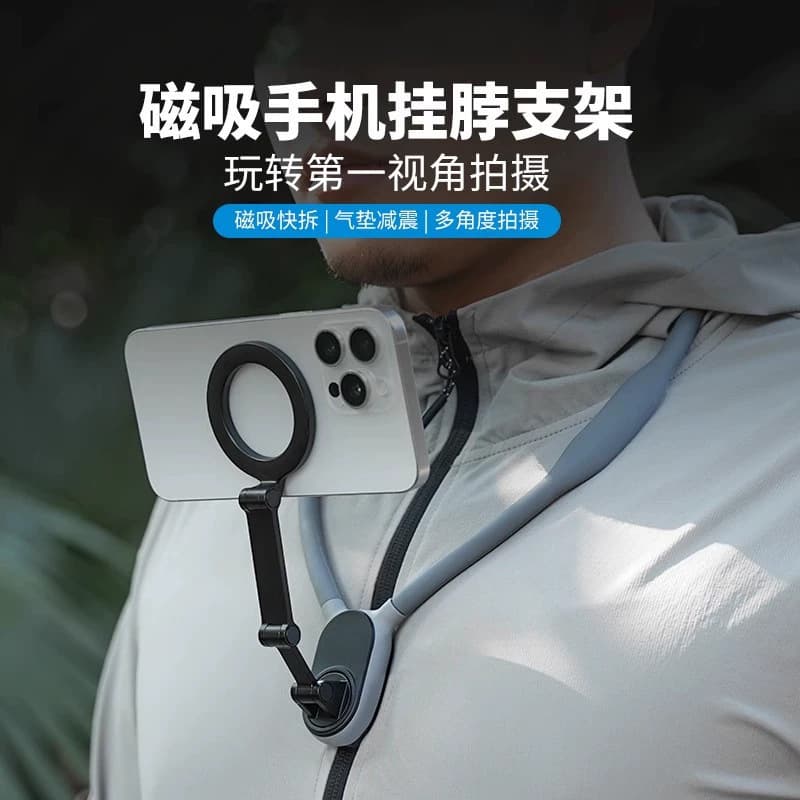 【公司貨】手機磁吸掛脖子式支架釣魚運動視角固定運動胸前拍攝防抖設備