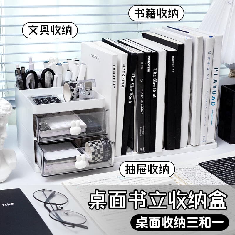創意抽屜式桌面收納盒書立書架立架大容量學生學習書桌書立架書檔亞克力分隔板書夾固定書本辦公室桌上置物架