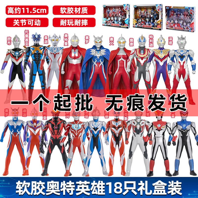 靈動奧特曼軟膠怪獸玩具迪迦賽羅銀河泰迦歐布變形聲光套裝
