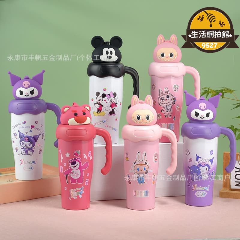 【高品質】拉布布庫洛米冰霸杯草莓熊史迪仔卡通杯米奇吸管保溫杯304不鏽鋼