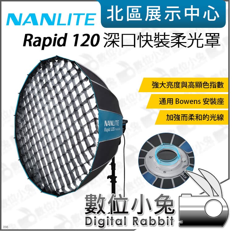數位小兔【 Nanlite 南光 Rapid 120 深口快裝柔光罩 SB-RP120】拋物線柔光罩 保榮卡口 快裝