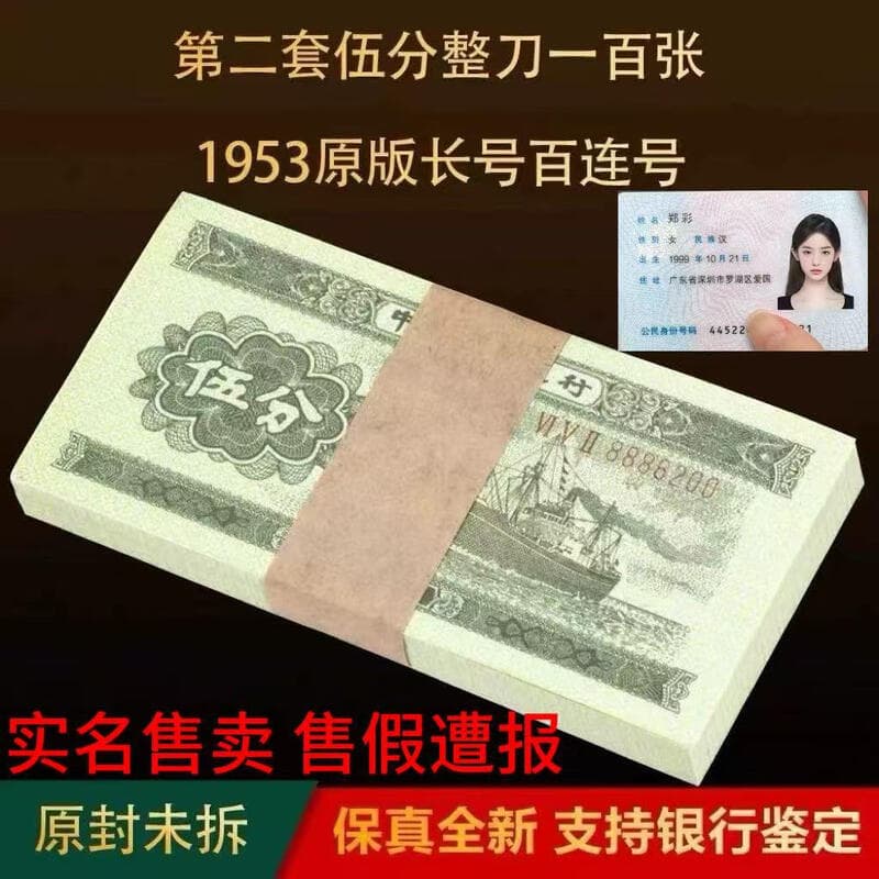 【滿300出貨】全新老版人民幣1953年伍分紙幣整人民幣五分紙幣5分錢整