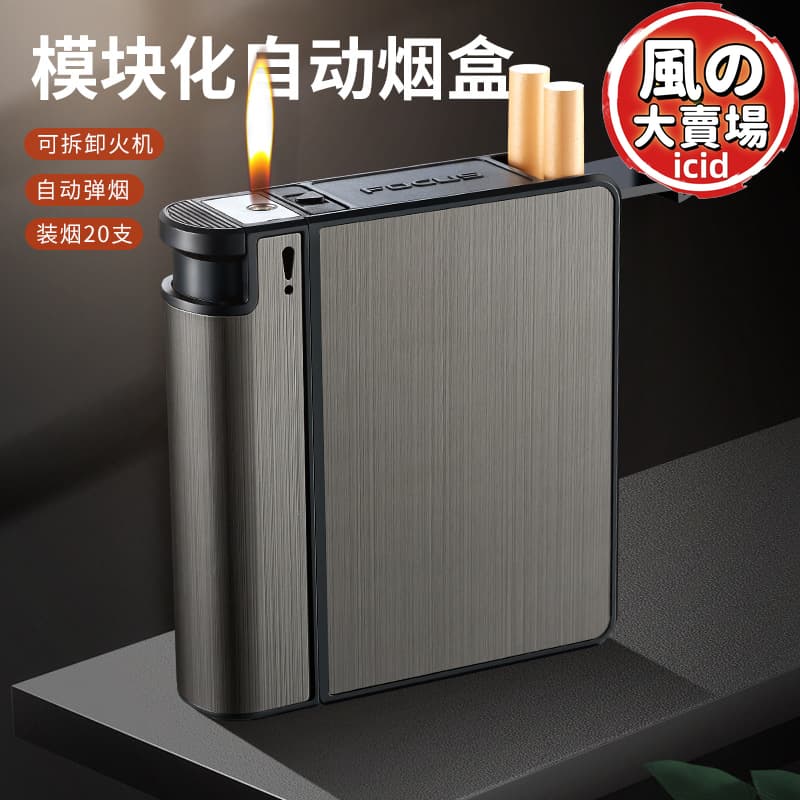 【高品質】可更換充氣打火機煙盒一體創意自動煙盒分離式裝20隻粗煙
