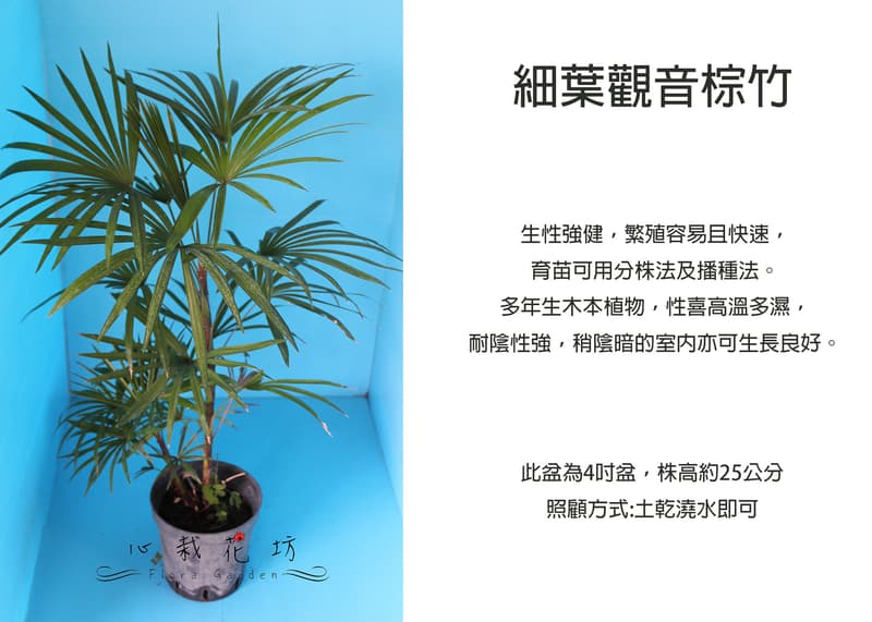 心栽花坊-細葉觀音棕竹/4吋/棕櫚/觀葉植物/售價250特價200