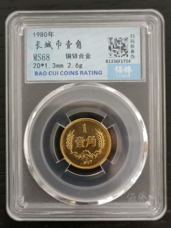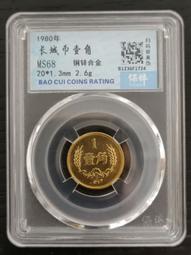 1980年長城幣1角長城壹角1角保粹評級MS68分第三套人民幣壹角壹角1角硬幣  保粹評級MS68 1980年版發.Y