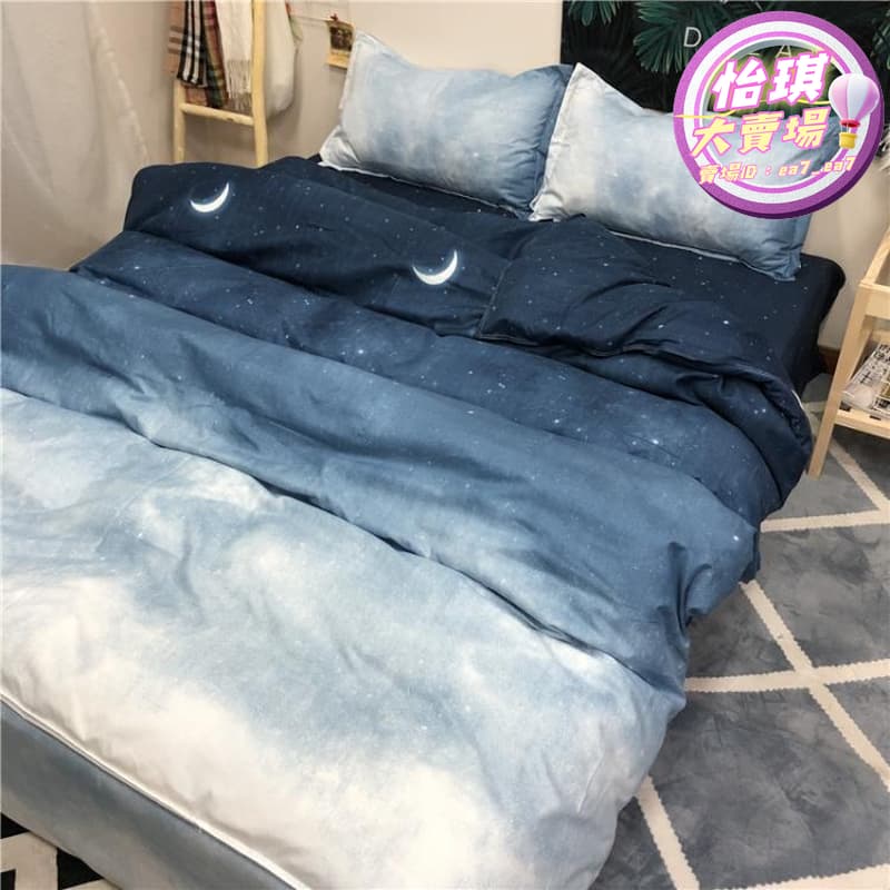 【售後保障】8折特惠 床包組 漸變藍色星空四件套床上用品星星月亮床單被套學生宿舍四件套 可開發票