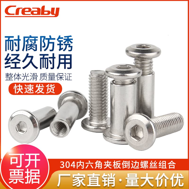 【滿200出貨】304不銹鋼倒邊內六角對鎖螺絲螺母家具連接夾板對接螺栓子母釘