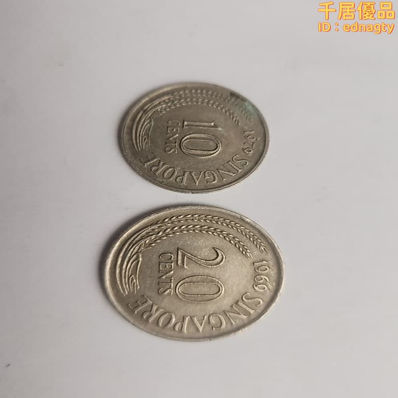 【精選】新加坡1976 年10分和1969 年20分硬,背面分別是海馬和劍魚圖案,銅鎳材質,品相完好,包漿自然,兩枚都