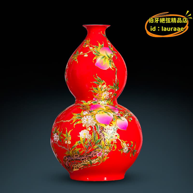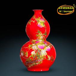 【台灣現貨】 景德鎮陶瓷器葫蘆瓶歐式紅色大花瓶家居客廳裝飾品電視櫃落地擺件