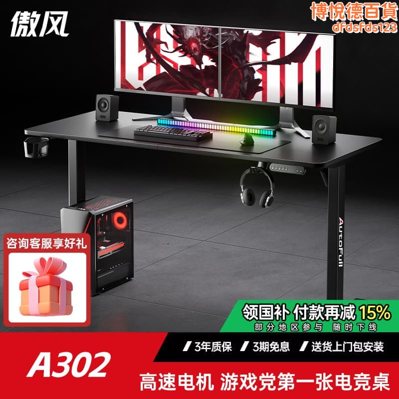 【精選】傲風A3 電競桌實木電動升降桌電腦桌家用辦公桌書桌子簡易出租屋