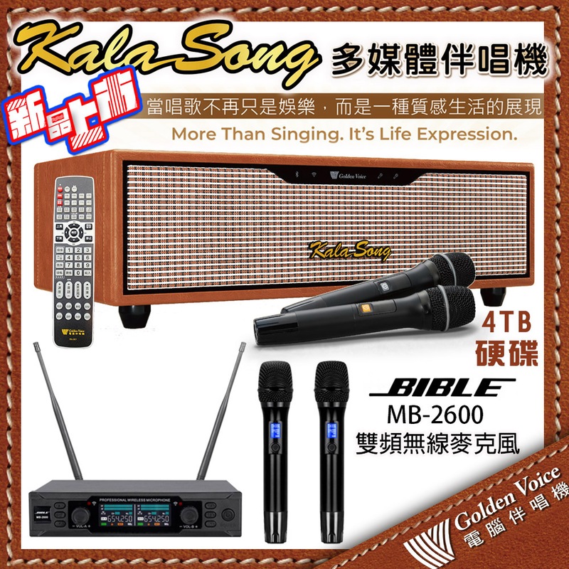 【PChome 24h購物】金嗓 KALASONG 卡拉頌多媒體聲控伴唱機 4TB硬碟+BIBLE MB-2600 雙頻道無線麥克風 R99N
