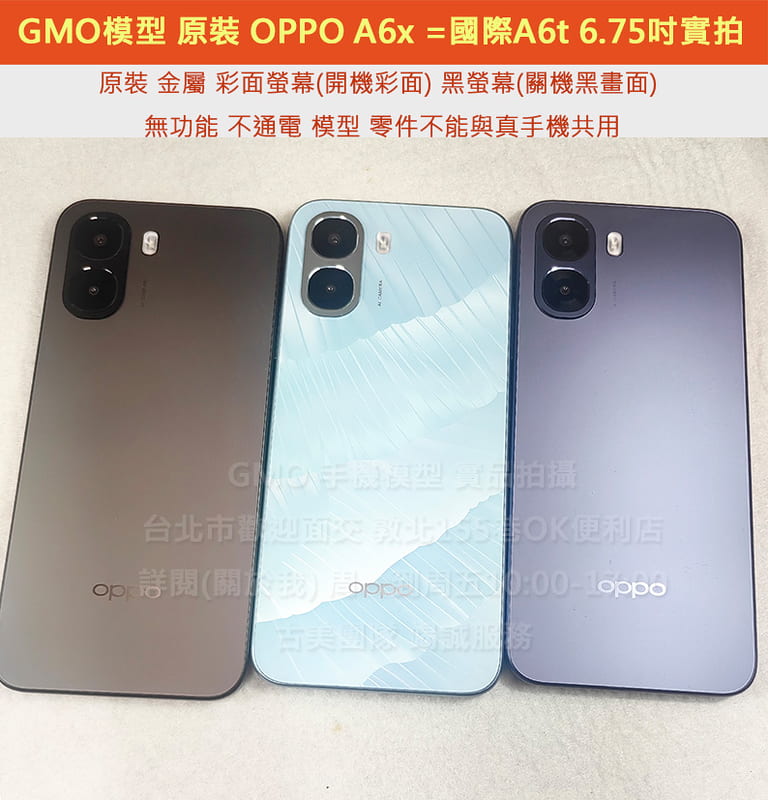GMO模型原裝金屬OPPO A6x =國際A6t 6.75吋展示Dummy樣品包膜上繳交差假機道具拍戲摔機仿製