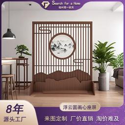 臺灣現貨新中式屏風隔斷客廳原木質柵欄進門玄關家用小戶型浮雲圓畫心座屏