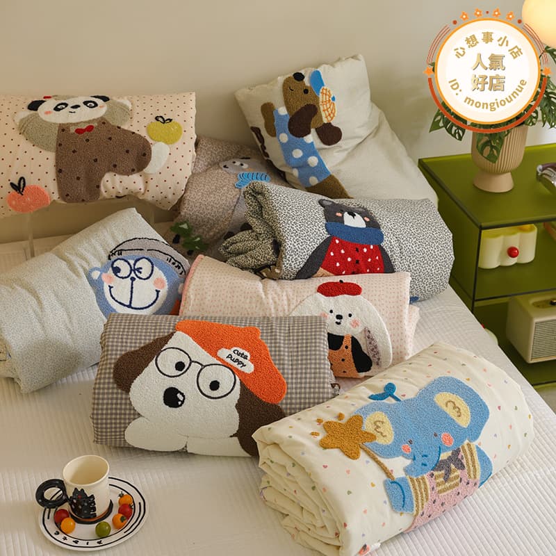 【五星好評】軟萌可愛毛巾繡20_大豆全棉夏被雙層紗純棉被子薄被芯可水洗機洗