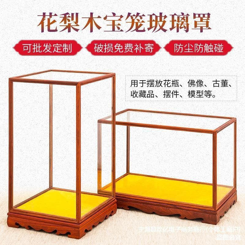 【今日下殺】紅木玻璃罩花梨木寶籠觀音佛像罩文玩古董透明防塵展示盒擺件
