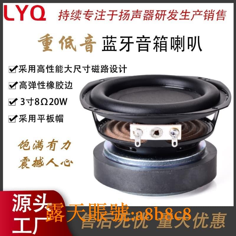 樂享購✨重低音喇叭3寸20新8歐20瓦3寸外磁橡膠邊藍芽音箱喇叭單元