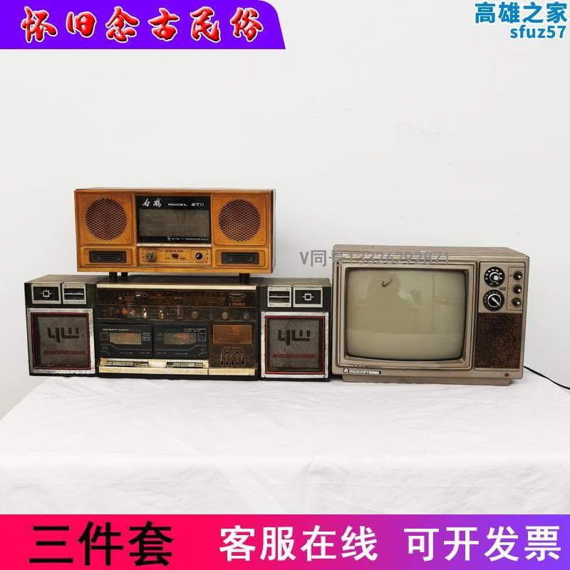 80年代老物件懷舊主題老式收音機舊錄音機錄音帶機老電視機裝飾擺飾