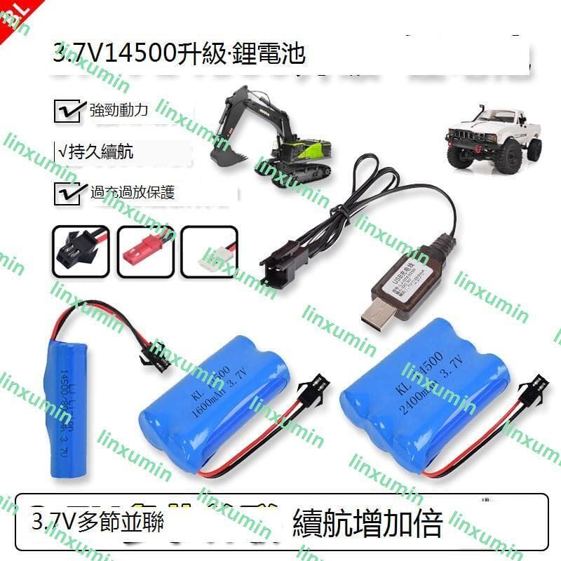遙控車電池玩具充電鋰電池大容量充電器線配件專用3.7v電池14500