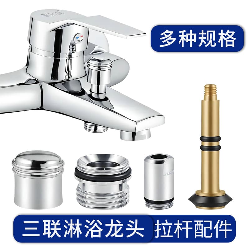 三聯浴缸淋浴花灑提拉分水器混水閥切換開關全銅拉杆拉帽龍頭配件