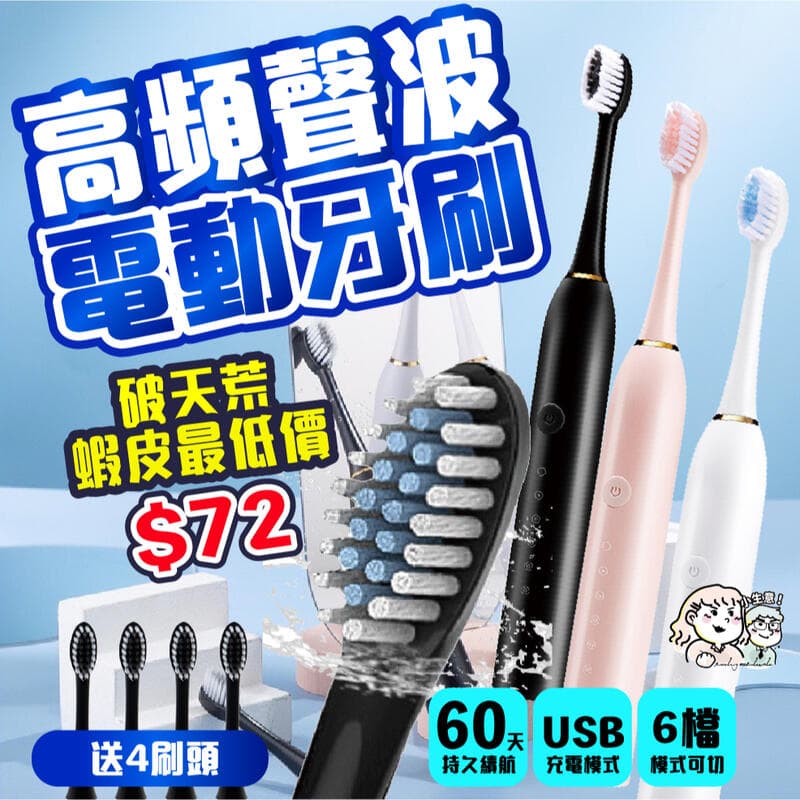送4刷頭 電動牙刷 成人款電動牙刷 軟毛牙刷 聲波牙刷 刷牙潔牙 牙齒美白 USB充電 聲波電動牙刷 牙刷 防水