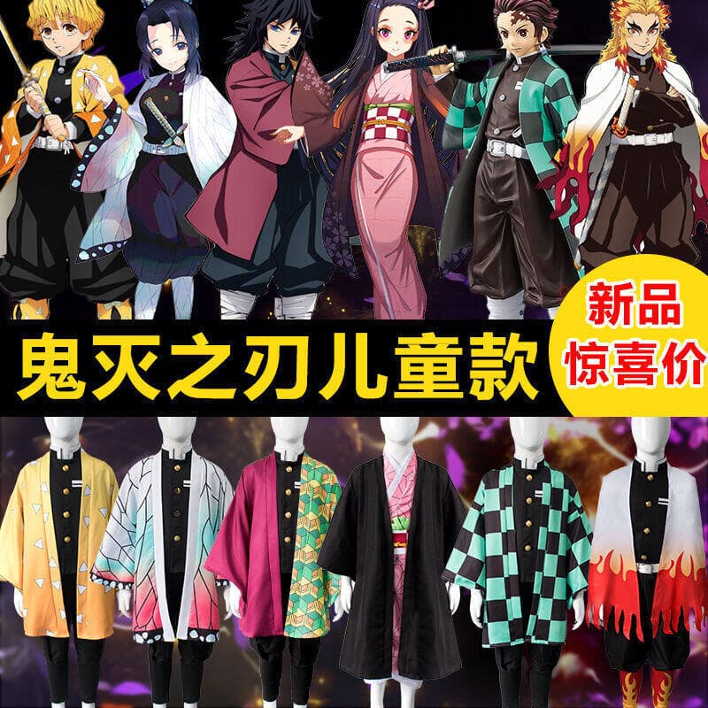 鬼滅之刃兒童款cos服我妻富岡義勇灶門炭治郎蝴蝶忍鬼殺隊服 臺灣現貨