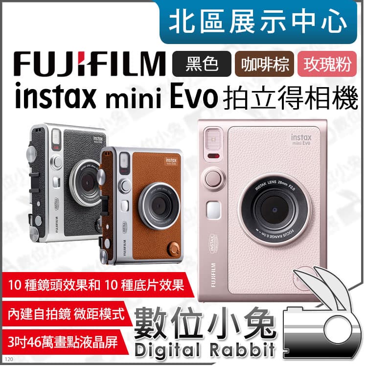 數位小兔【 富士 FUJIFILM instax mini Evo 拍立得 混合式數位馬上看相機 銀黑 咖啡棕 玫瑰粉】