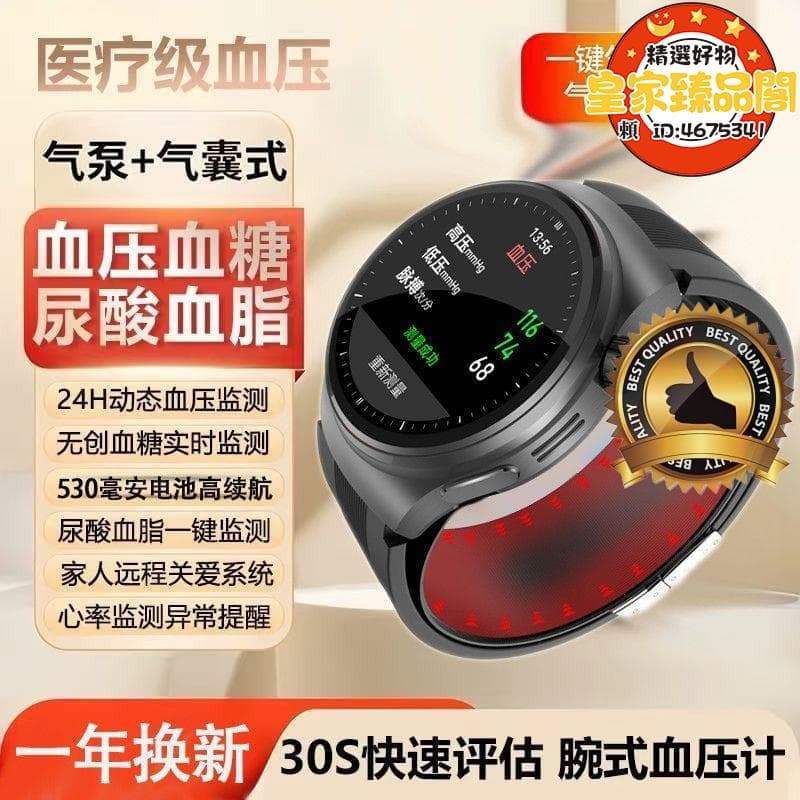 【皇家臻品閣】智慧手錶 智能手錶 運動手錶 醫療級氣泵氣囊測血壓首婊通話運動心率智能手環血糖尿酸血脂睡眠  露天市集