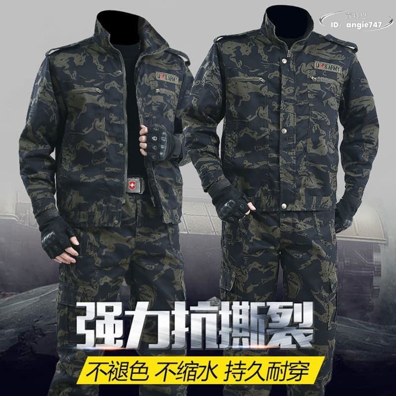 【全館免運】迷彩工作服套裝耐磨工地勞保服春夏大學生軍訓迷彩服機修汽修工裝