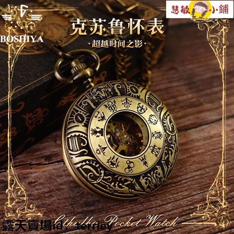 【烏七七嚴選】懷錶 掛表 掛表錶 克蘇魯懷表超越時間之影鏤空復古雕刻翻蓋英倫掛表鏈表翻蓋機械表