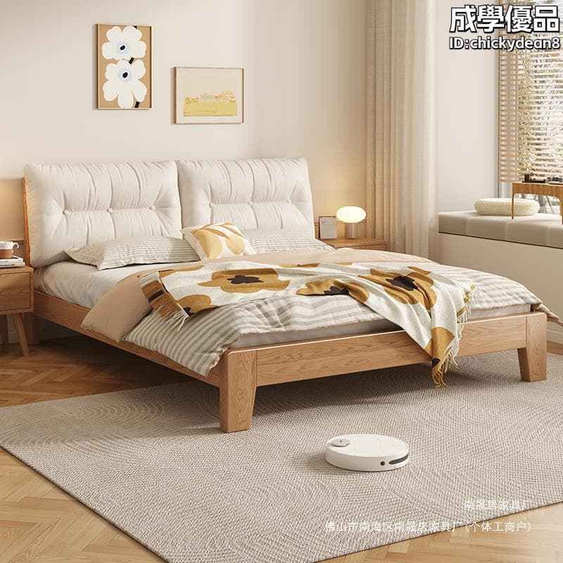 【銷售冠軍】床實木床現代簡約主臥1.8m軟包床1.5m單人床架橡木全實木床雙人床