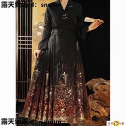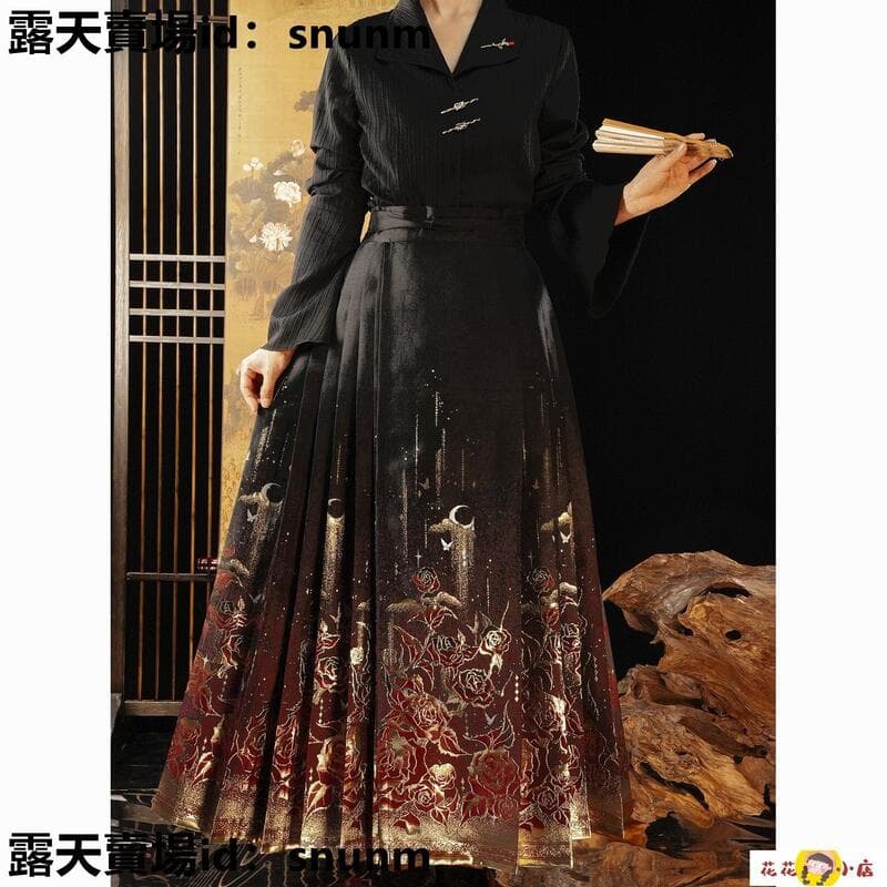 【花花小店】馬面裙 裙子 國風裙 鎏金玫瑰原創漢服明制印花仿妝花日常馬面裙上衣套裝女2024新款