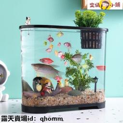 【露天ID:snunm】魚缸 桌面魚缸小型家用高清透明塑料生態魚缸有蓋辦公桌橢圓形生態缸