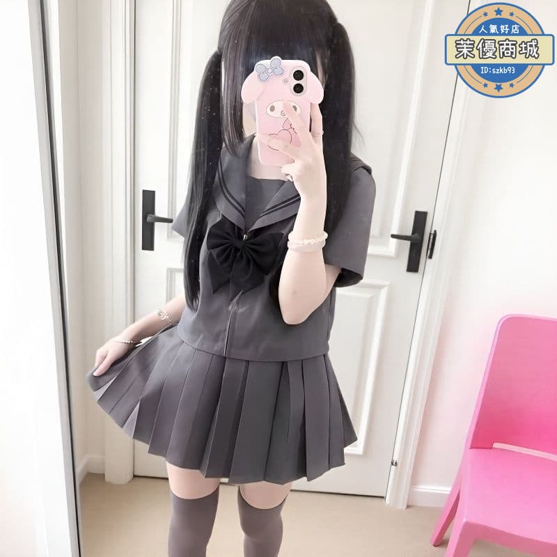 【】原創jk制服女基礎款灰色二本水手服套裝校供感百褶裙短袖